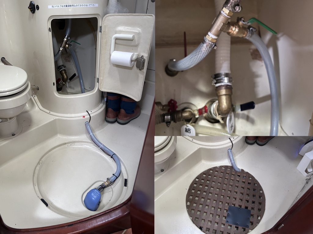 トイレは、じゃんじゃん水を流してお掃除するのが効率が良いし、気持ち良いのですが、その度に溜まったビルジをハンドポンプとスポンジで捨てるのは、あまり愉快な仕事ではありませんでした。
