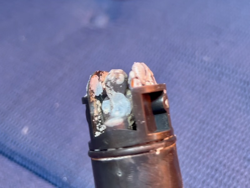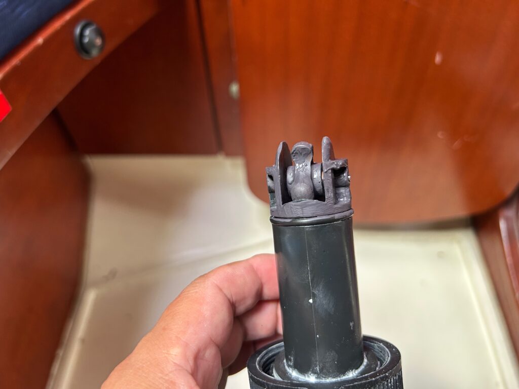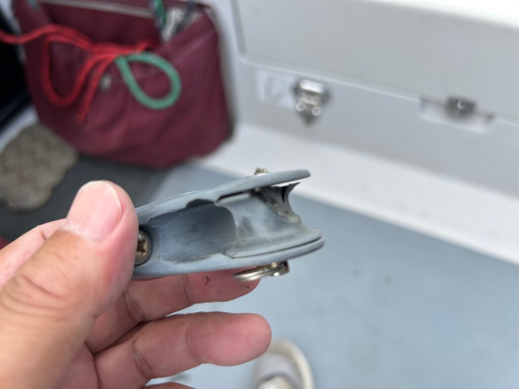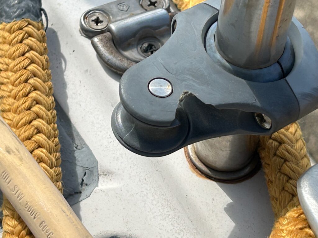 3つ目はジブファーラーのファーリングラインのガイド。どうもファーラーの巻き取りが渋いなあと思ったら、ブロックが固着してすり減ってしまっていました。