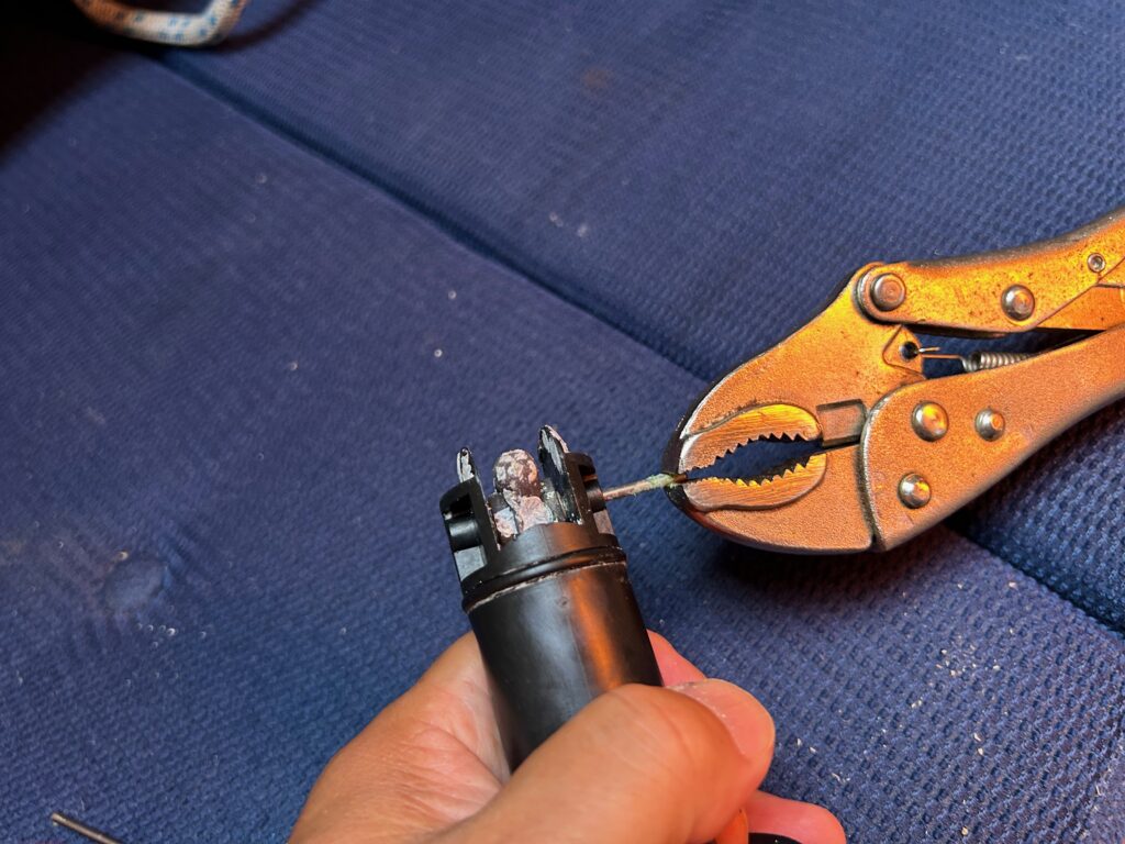 それはマニュアルに書いてありました。交換用の芯を使って、元の芯を叩き出せとの事。