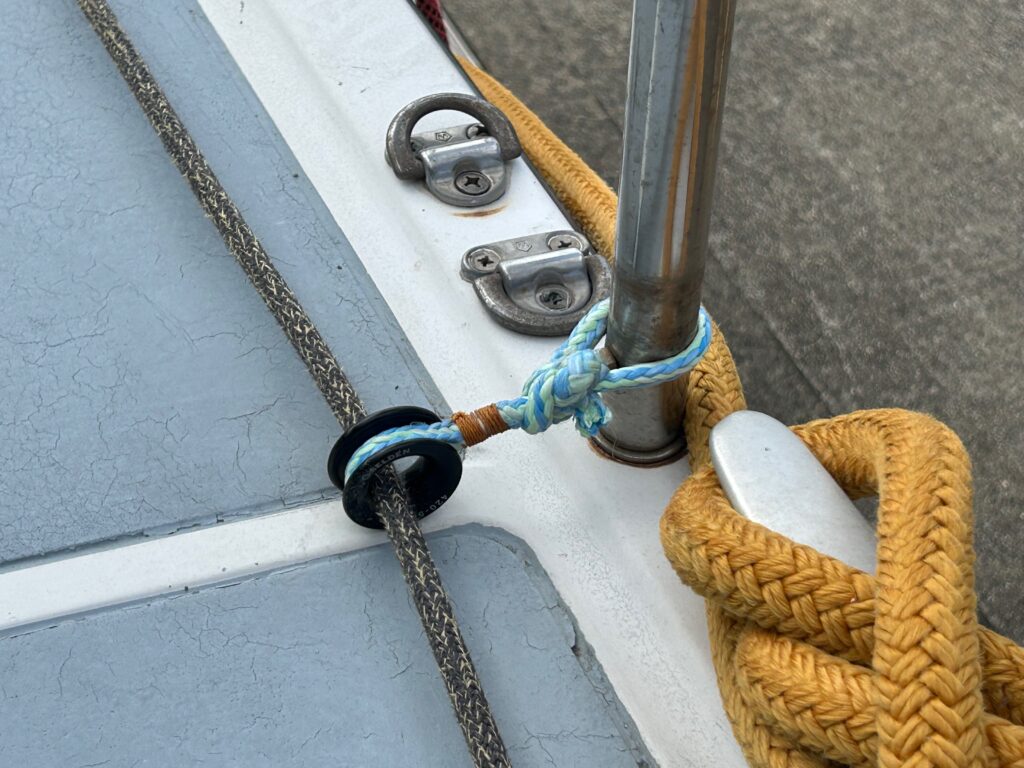 はい、そんなにテンションがかかるところじゃなくて、シートがデッキ上で邪魔にならないように端に寄せてるだけなので、スタンション直で大丈夫だと思います