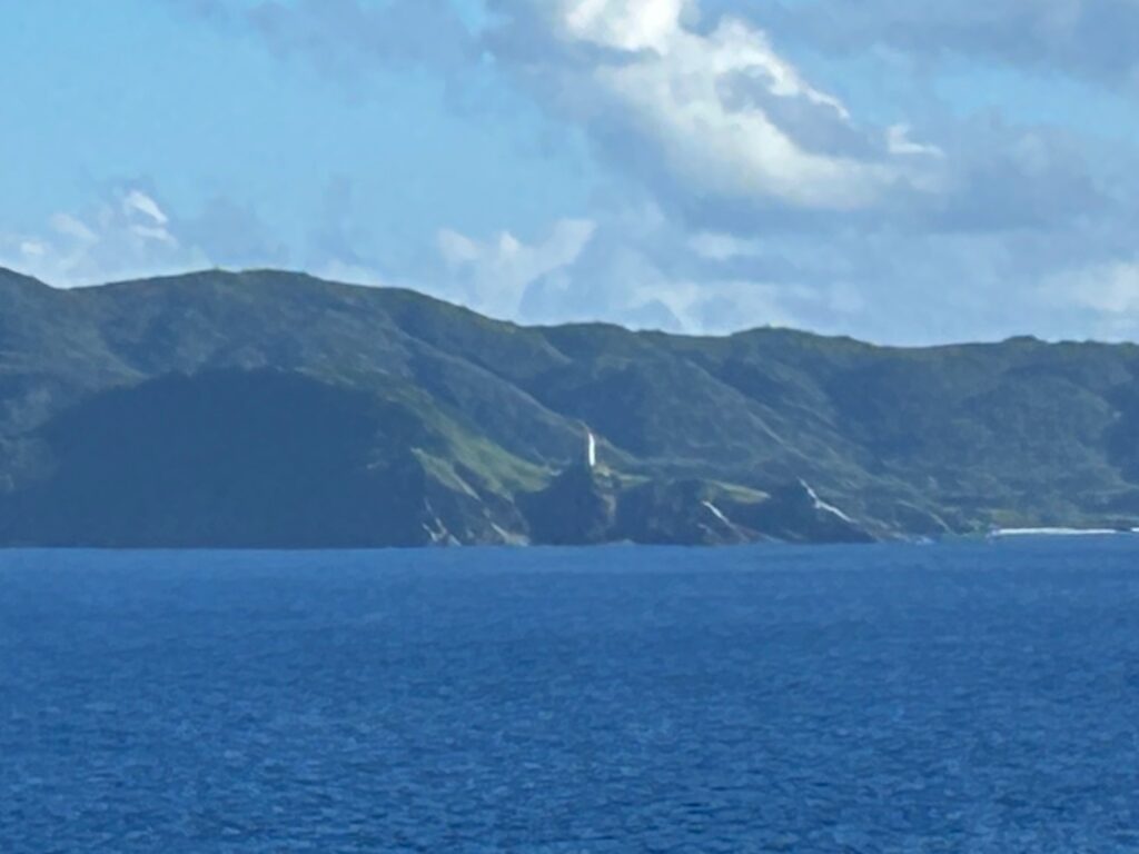ところで、番外ですが、翌日沖縄の沖を通った時に、残波岬灯台が沖から視認できました。