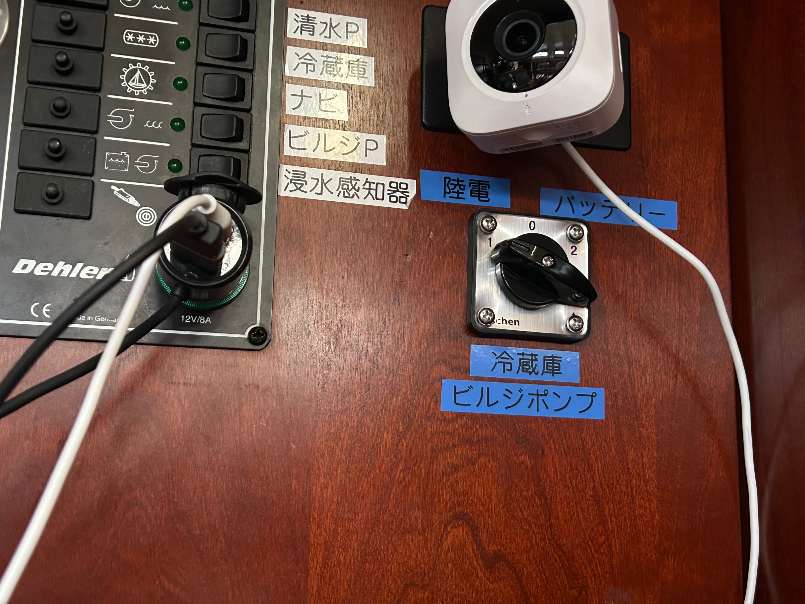 ソーラーパネルからの充電は配電盤内のスイッチでカットできるようにした。こうしておけば、自艇のバースに停泊中は、バッテリースイッチを完全に切って、バッテリーからの充放電が一切ない状態にできる。